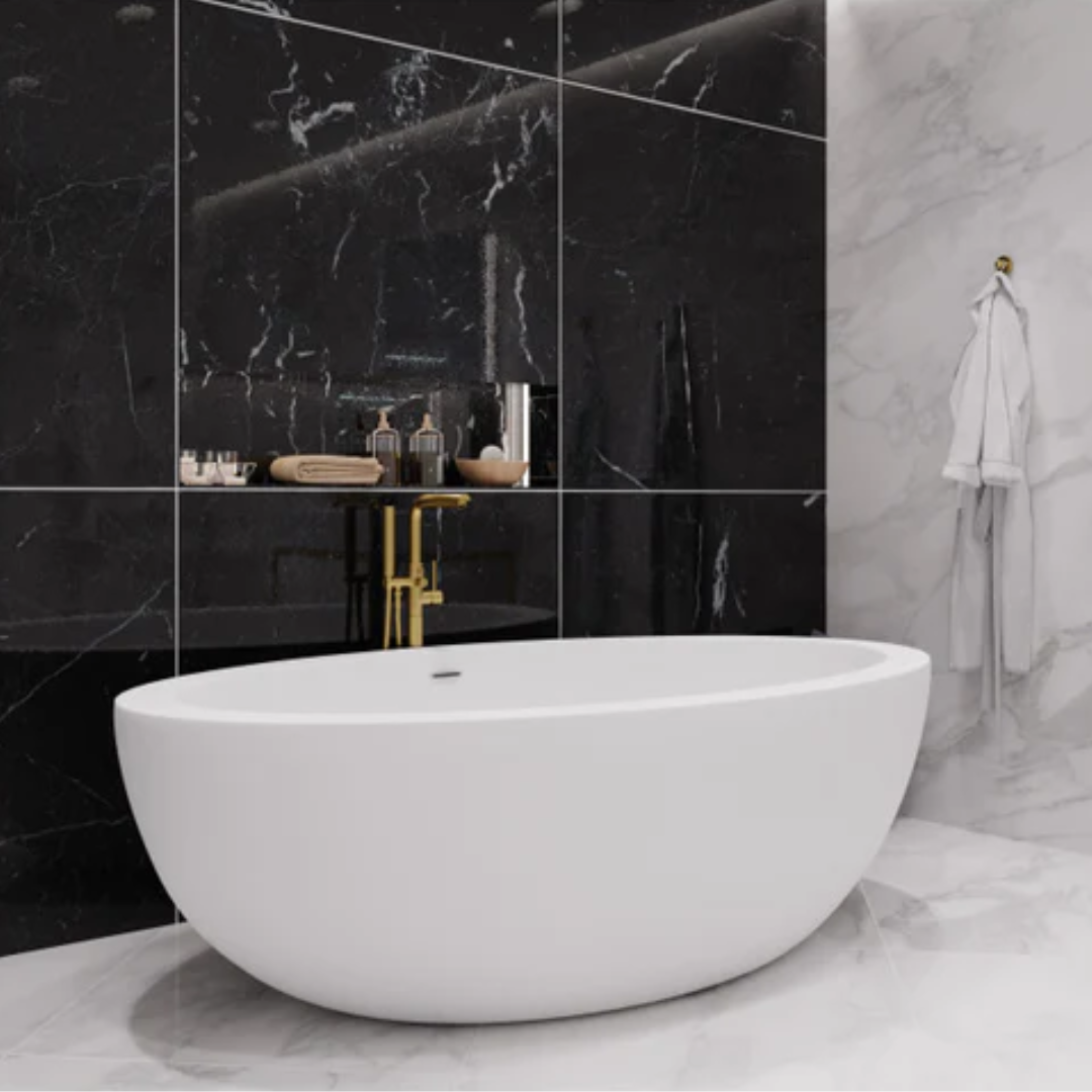 Bring an oasis home with ANZZI's Kekehun Solid Surface freestanding soaking bathtub. Ergonomically oval designed to cradle the body's form for maximum comfort this tub is styled with a classic and contemporary flair. Relax and drift away while submerged in your personal spa pool.