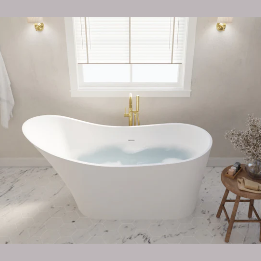 - One Piece Solid Surface man made ANZZI Stone in White Matte