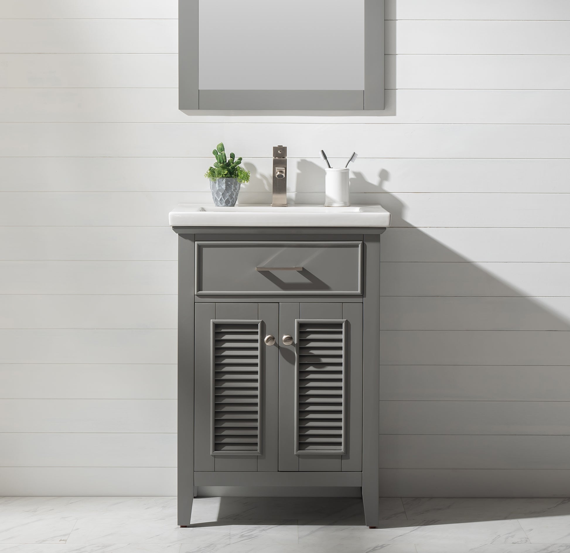 The Cameron single sink vanity by Design Element provides the perfect finishing touch to your bathroom remodel project. Made from solid wood and MDF to prevent warping, this vanity will maintain its beauty and functionality year after year. The ceramic countertop and integrated sink with overflow perfectly match the styling of the cabinet and is extremely simple to maintain. Opening the 2 soft closed doors reveals an ample storage space. The included brushed finished hardware provides the perfect finishing touch to the cabinet. Faucet and drain are not included.