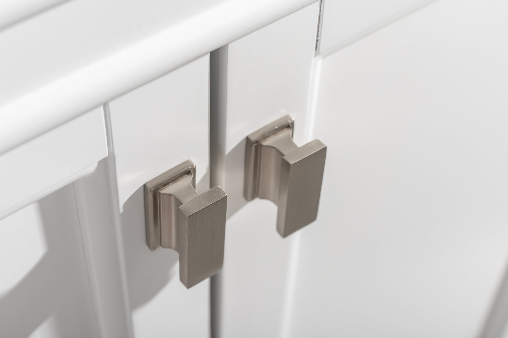 Combining classic charms with modern features, the elegant Milano vanity collection by Design Element will instantly transform your bathroom into a work of art. All Milano vanity cabinets are constructed from solid birch wood and MDF to prevent warping and paired with a 1-inch-thick white quartz countertop and backsplash. Soft closing doors and drawers provide smooth and quiet operations, while brushed finished metal hardware provides the perfect finishing touch. Other fine details include white ceramic sinks with overflow, dovetail joint drawer construction, predrilled holes to accommodate 8-inch widespread faucets, and multi-layer paint finish on the cabinets provide beauty and durability for years to come.